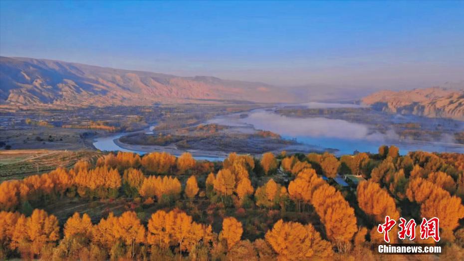 深秋時節(jié),享有“天下黃河貴德清”美譽的青海省貴德縣秋意正濃。黃河岸畔,一層層薄霧如飄紗籠罩河面,碧波蕩漾的黃河水與兩岸樹林、農(nóng)田、丹霞地貌交相輝映,美景如畫。青海省是中華民族母親河黃河的發(fā)源省,黃河流經(jīng)貴德76.8公里。貴德縣融媒體中心 供圖
