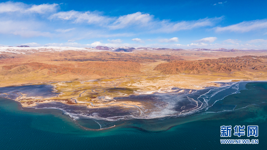 航拍:黃河源頭冬格措納湖 冰雪消融展風(fēng)姿
