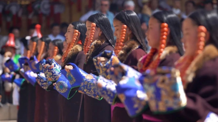 圖為來自青海省黃南州同仁市的姑娘們身著美麗的傳統(tǒng)服飾 圖片來源:黃南報