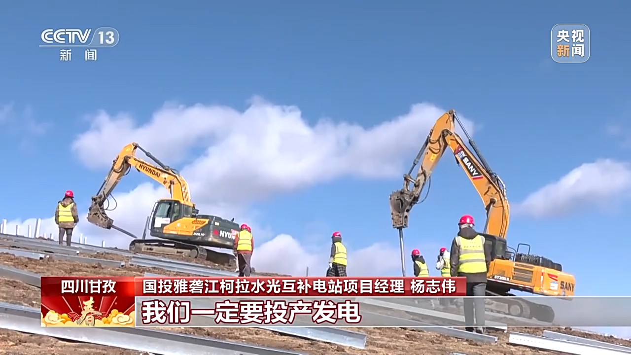 總臺(tái)央視記者 古峻嶺:在海拔4600米的柯拉水電光伏互補(bǔ)電站,1000多名建設(shè)者正在加緊施工,他們要在春節(jié)期間把53萬根光伏基礎(chǔ)樁全部施工完成。