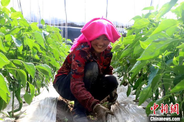 圖為農(nóng)戶在農(nóng)業(yè)基地里工作?!s藏措 攝