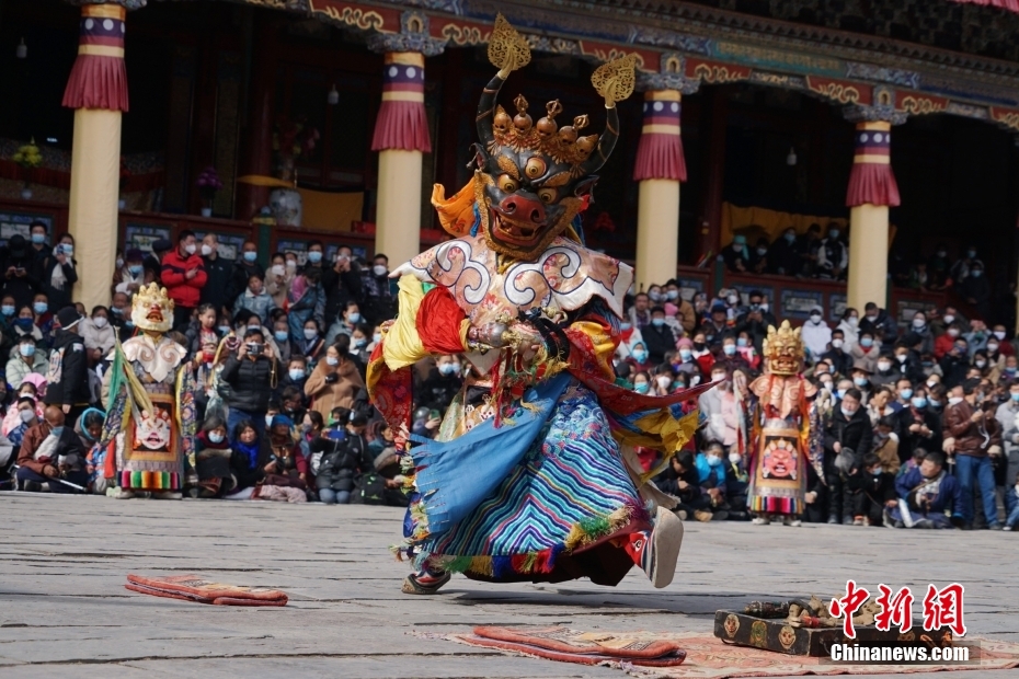 2月4日,農(nóng)歷正月十四,位于青海省西寧市湟中區(qū)的藏傳佛教名剎塔爾寺舉行“跳欠”儀式。