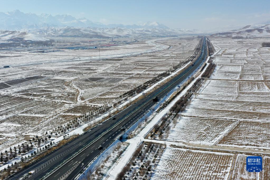 2月14日拍攝的烏鞘嶺及周邊雪景(無人機(jī)照片)。新華社記者 范培珅 攝