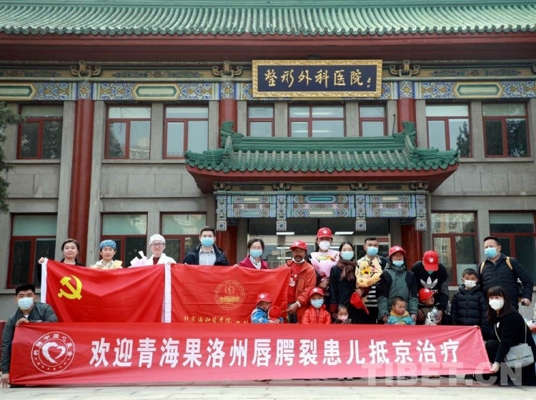 圖為來自青海省果洛藏族自治州的唇腭裂患兒和患兒家屬與中國(guó)醫(yī)學(xué)科學(xué)院整形外科醫(yī)院專家、北京同心共鑄公益基金會(huì)的志愿者等合影 攝影:劉莉