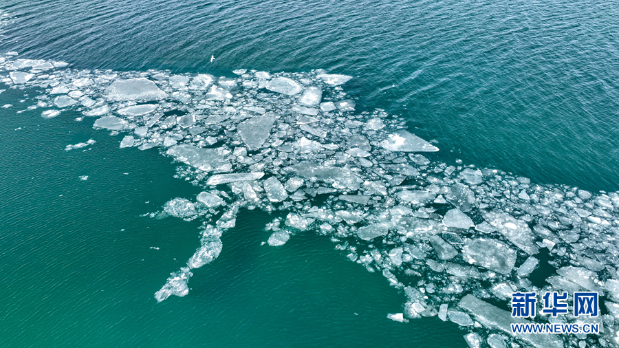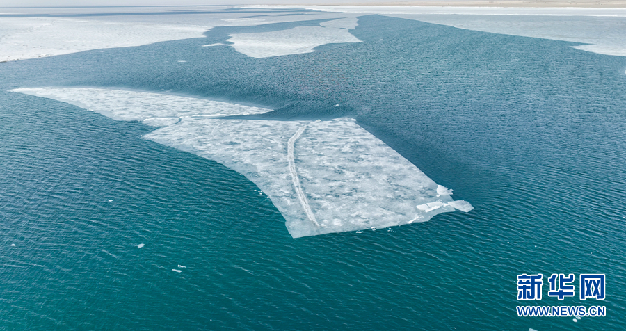 這是4月8日拍攝的青海湖開湖景觀(無人機照片)。新華網 宋忠勇 攝