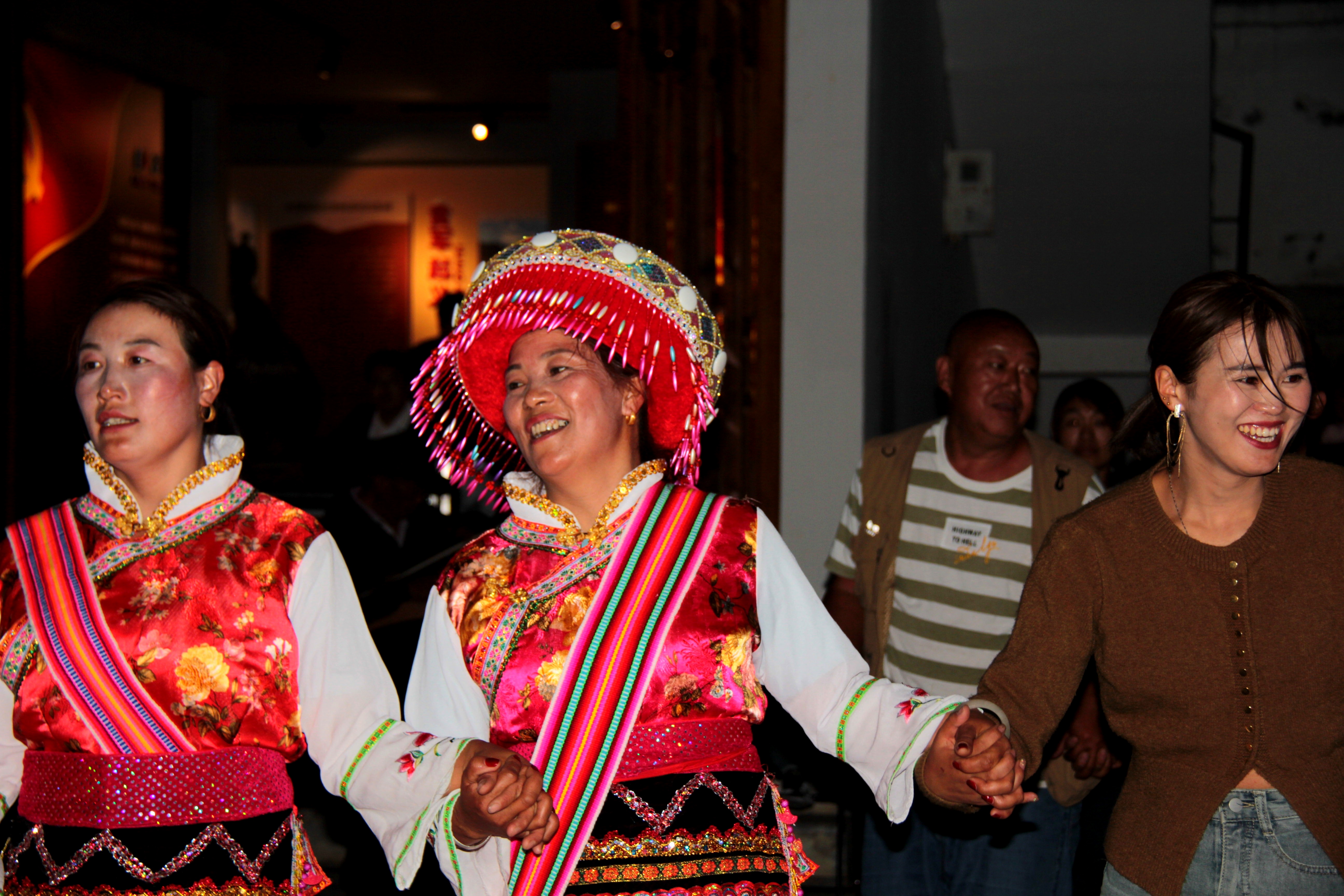 天還沒黑,金江紅色文化廣場上已經(jīng)圍了不少人,當?shù)丶{西族、傈僳族等各族群眾身著節(jié)日盛裝,等待著晚會的開始,