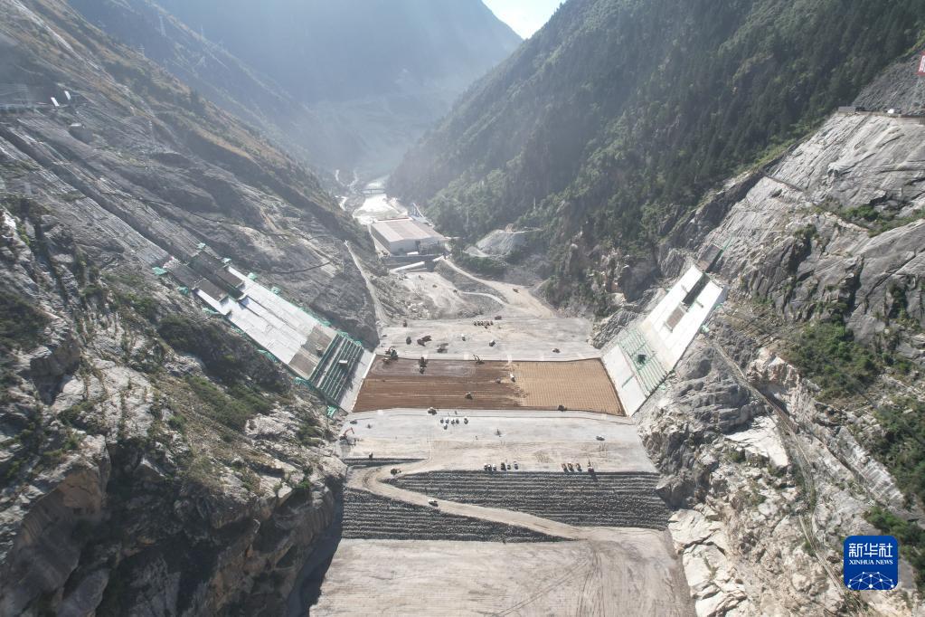 世界級高壩——雙江口水電站大壩填筑至百米高度。 新華社記者 楊進 攝