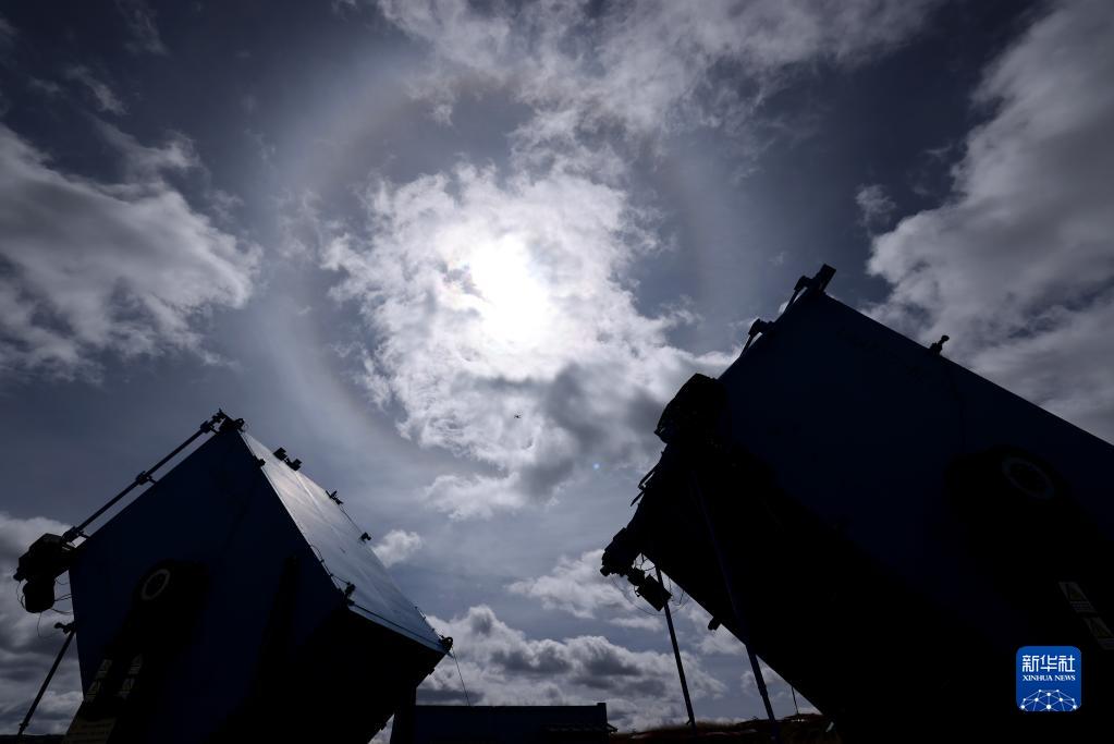4月22日,高海拔宇宙線觀測站觀測基地廣角切倫科夫望遠(yuǎn)鏡上空出現(xiàn)日暈。新華社記者 金立旺 攝