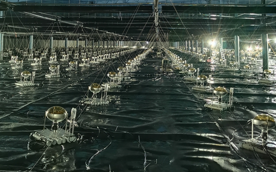 LHAASO裝置WCDA三號水池內安裝完成的光電倍增管。中科院高能所供圖