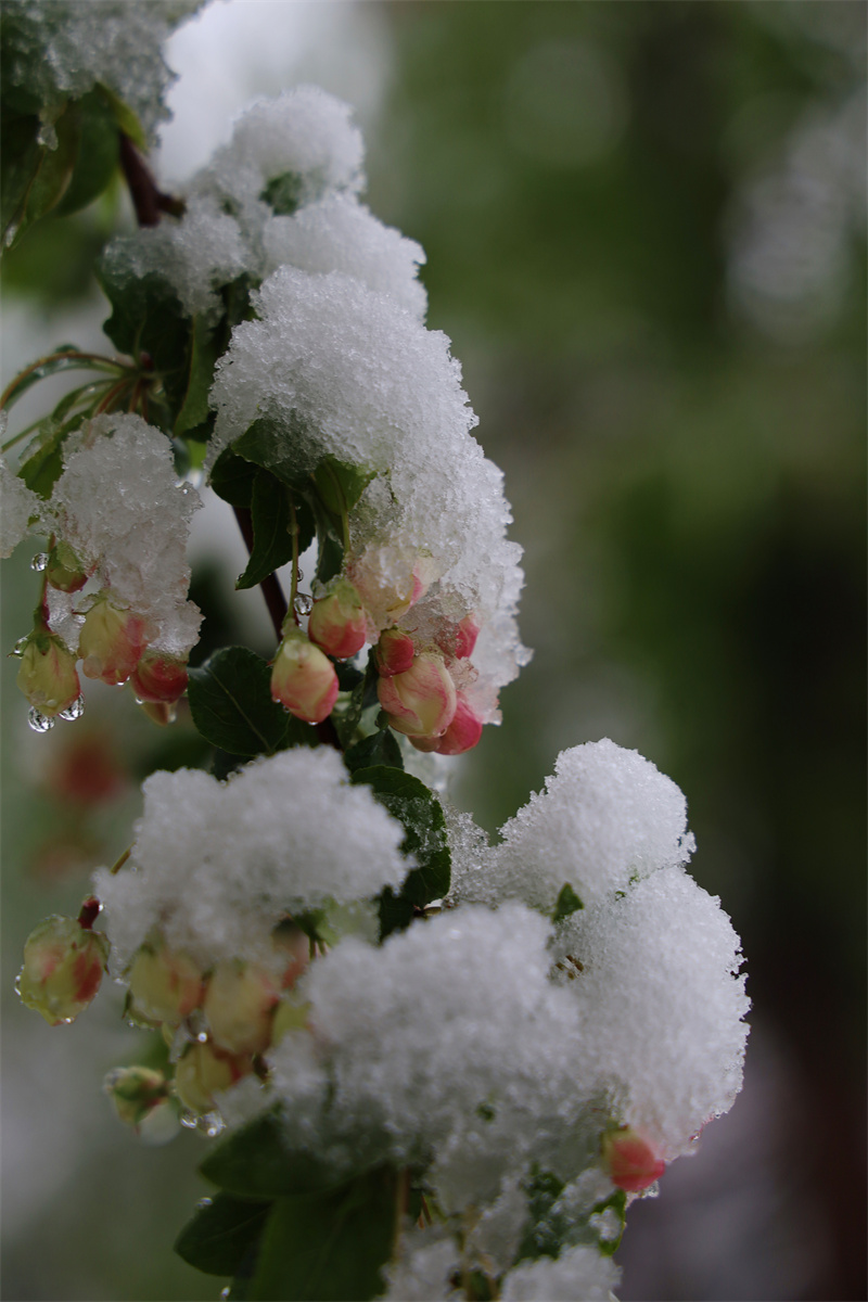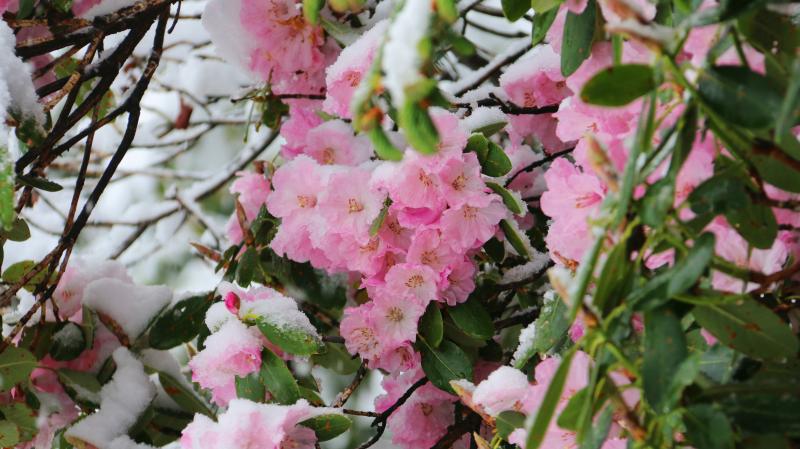 立夏節(jié)氣過后,香格里拉又迎來了一場大雪。櫻花、杜鵑花、鳶尾花在雪中競相綻放,美如童話世界。