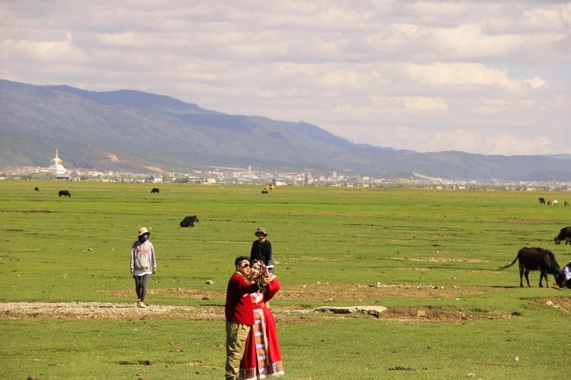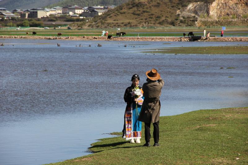 伴隨著立夏過后的第一場雨雪,迪慶高原綠意更濃。納帕海湖畔更添一分高原夏日氣息,碧藍(lán)的湖水、翠綠的草原和自由行走在草原上的牛羊是高原獨(dú)特的風(fēng)景線。深深吸引著來自五湖四海的游人駐足觀賞。雖然“五一”假期已過,但前往納帕海游玩的游客并沒有減少,不少游客表示是特意前往這里感受草原風(fēng)光、拍照留念的。