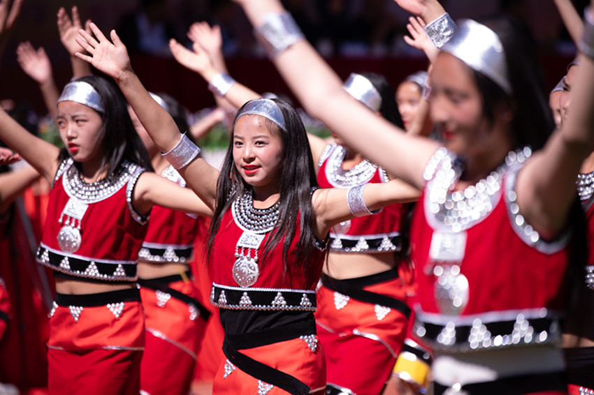 5月28日,雅江縣第五屆中小學生校園文化藝術節(jié)展演活動在呷拉鎮(zhèn)片區(qū)寄宿制小學開演。表演分童心向黨跟黨走、陽光體育伴成長、民族團結一家親三個篇章,共有18個代表隊、2000余人參演。師生們隨著動感的節(jié)拍歡快起舞,用精彩的表演生動展現(xiàn)了昂揚的革命精神、繽紛的青春夢想,贏得一波又一波熱烈的掌聲。圖為展演活動現(xiàn)場。