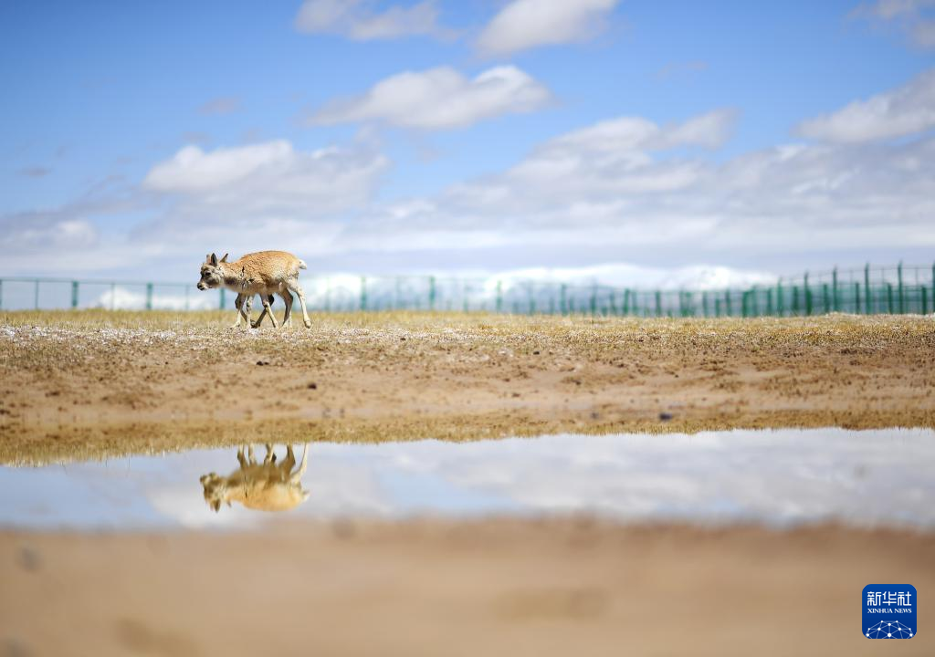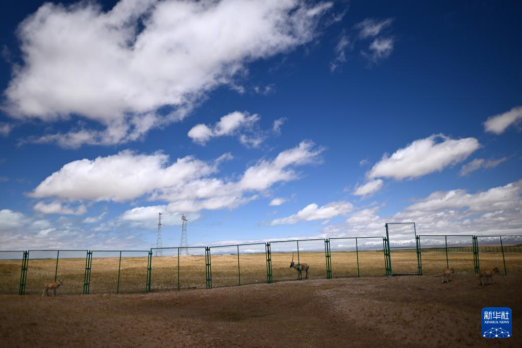 在可可西里國(guó)家級(jí)自然保護(hù)區(qū)索南達(dá)杰保護(hù)站,藏羚羊在野生動(dòng)物救助中心活動(dòng)(5月30日攝)?!⌒氯A社記者 薛玉斌 攝