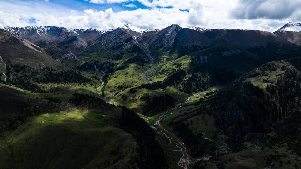這是6月18日在青海省玉樹藏族自治州囊謙縣境內(nèi)拍攝的三江源地區(qū)風(fēng)光。 新華社記者 柳澤興 攝