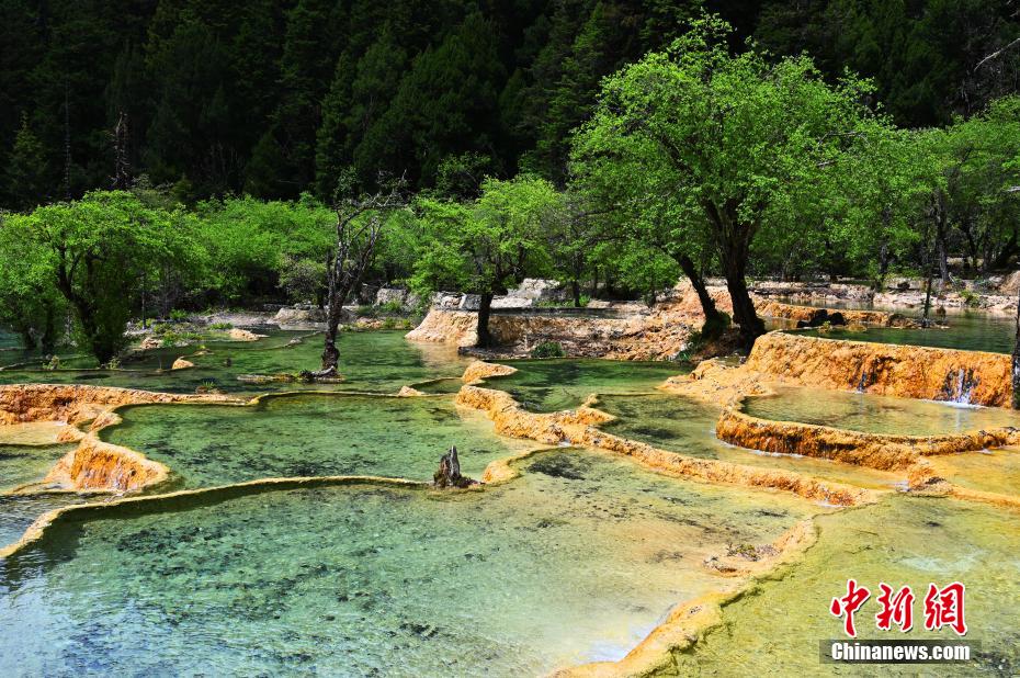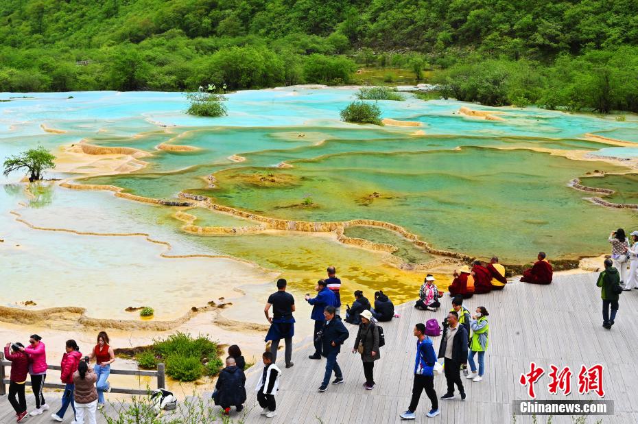 6月19日,初夏時(shí)節(jié),世界自然遺產(chǎn)黃龍風(fēng)景名勝區(qū)風(fēng)景如畫,吸引眾多游客觀光游玩。