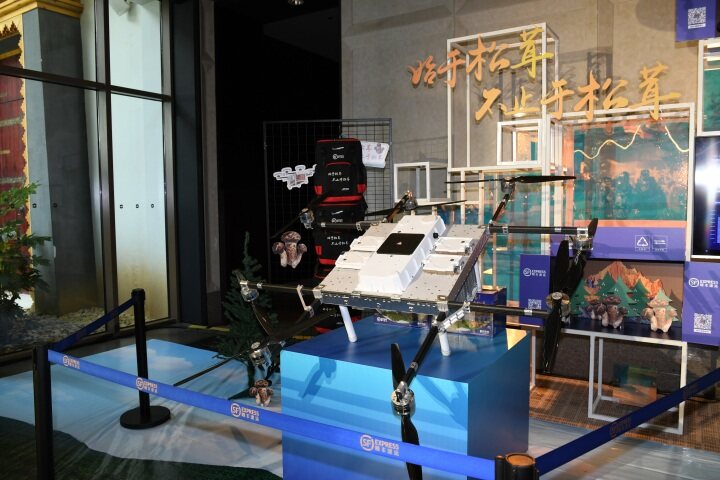 運(yùn)有松茸的無人機(jī)從產(chǎn)區(qū)香格里拉市建塘鎮(zhèn)吉迪村出發(fā),不到20分鐘就被送達(dá)位于市區(qū)香格里拉大酒店的“始于松茸、不止于松茸”第二屆香格里拉松茸論壇暨順豐寄遞解決方案發(fā)布會(huì)現(xiàn)場(chǎng),這是順豐公司給出的2023年松茸寄遞解決方案之一。