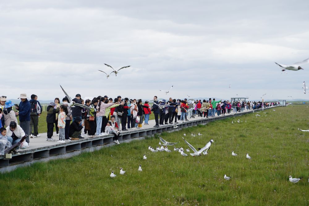 7月14日,游客游覽若爾蓋縣花湖景區(qū)。新華社記者 邢拓 攝