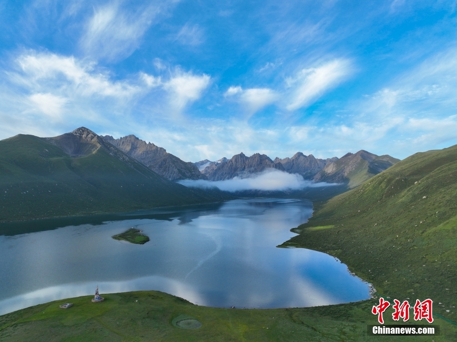 7月19日,盛夏時節(jié),青海省果洛藏族自治州久治縣年保玉則山間云霧繚繞,山下鮮花盛開,水清草豐,靜謐的湖水與嶙峋的山巒相映成趣,宛如仙境。年保玉則總面積3469平方公里,山形如蓮花,保存有冰蝕地貌、冰磧地貌、現(xiàn)代冰川等地質(zhì)遺跡。中新社記者 馬銘言 攝