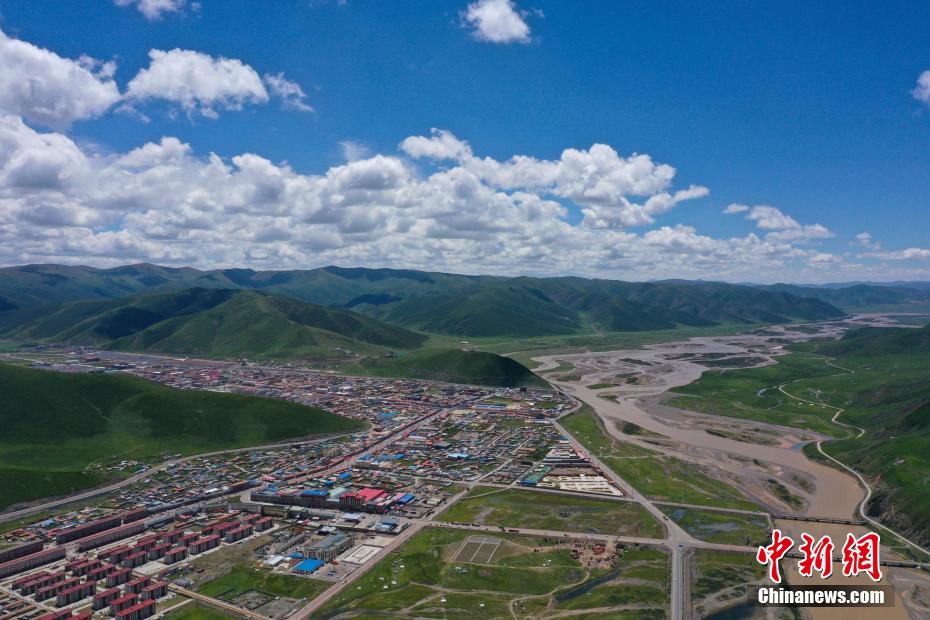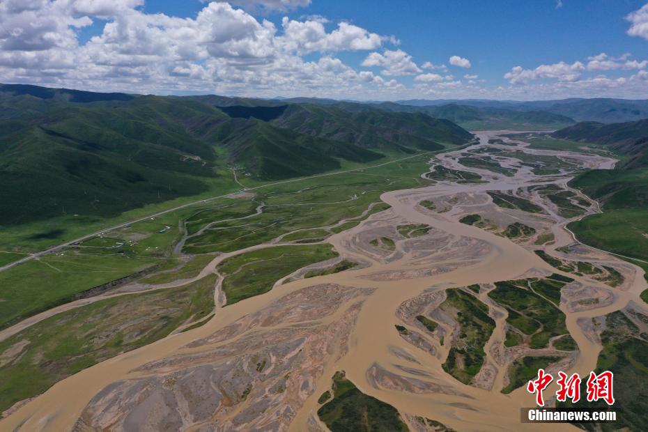 7月28日,航拍青海省果洛藏族自治州達(dá)日縣黃河辮狀水系。果洛州達(dá)日縣平均海拔在4200米以上,盛夏時節(jié),連綿的山巒披上“綠毯”,黃河流經(jīng)其境內(nèi)后,在開闊平緩的河道中數(shù)十條水流時而相匯時而分離,交織出巨型的辮狀水系,在群山和城鎮(zhèn)中蜿蜒流淌,形成獨(dú)特的高原壯美山河圖。