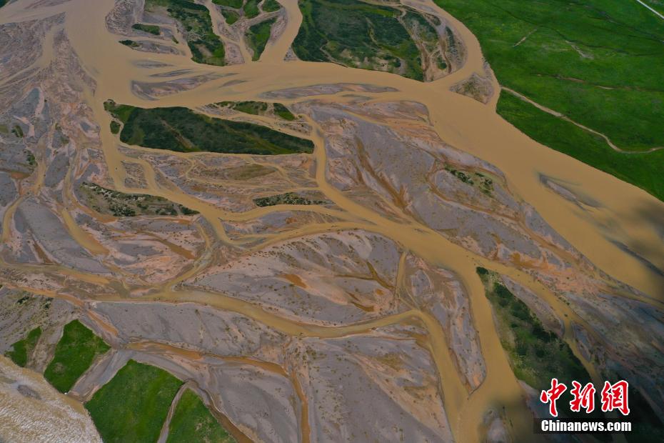 圖為航拍青海省果洛藏族自治州達(dá)日縣黃河辮狀水系。馬銘言 攝