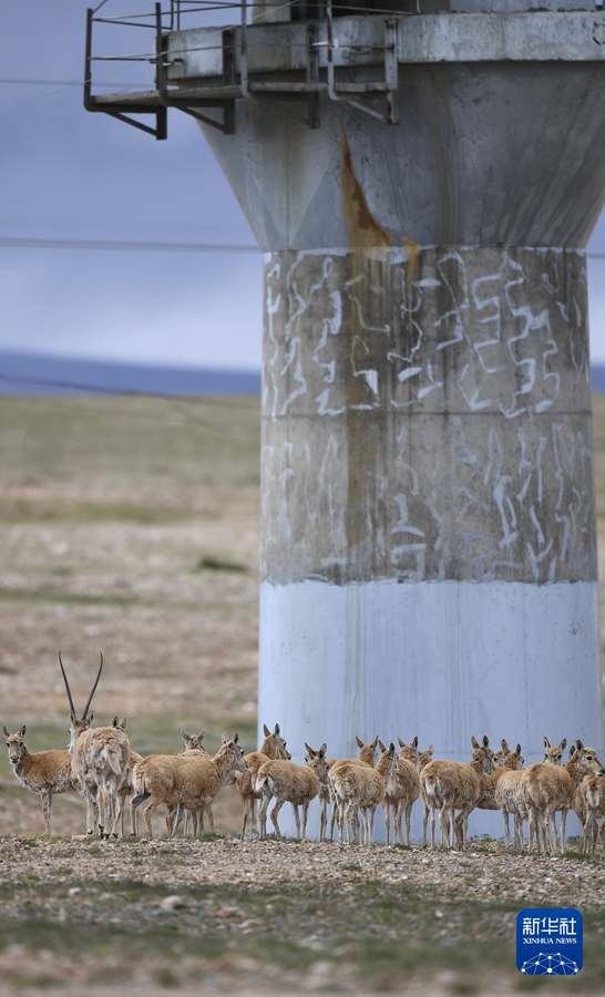 7月28日,一群藏羚羊準(zhǔn)備通過青藏鐵路五北大橋。新華社記者 韓方方 攝