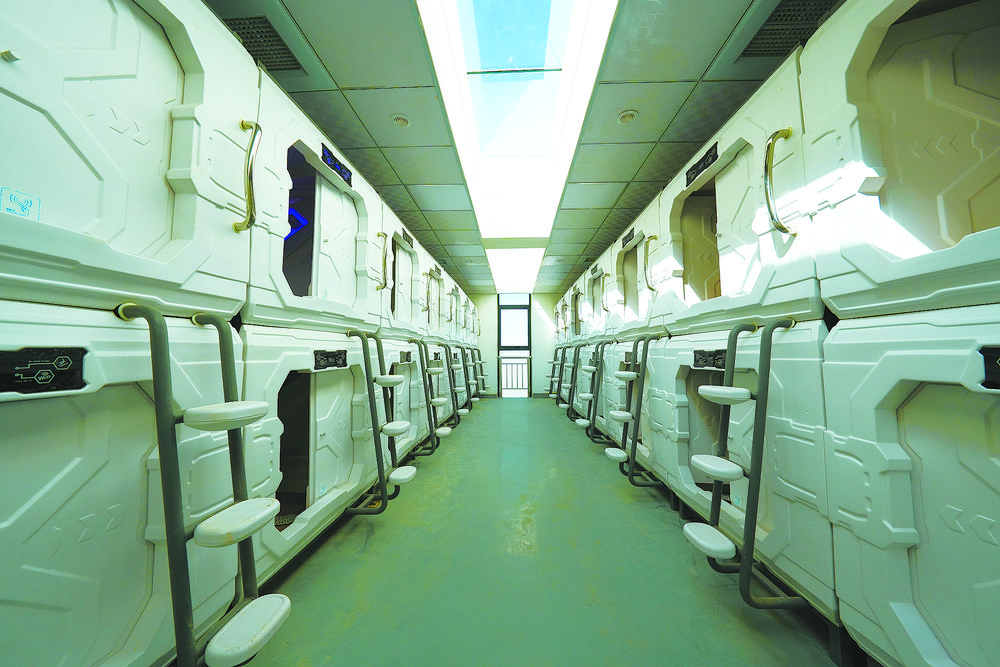 “我們的建筑風(fēng)格是模擬未來人類移居火星后的生存環(huán)境,有‘總部大樓’‘火星艙’等?!表樦衩袷种傅姆较?,才發(fā)現(xiàn),原來那些白色集裝箱正是營地建筑的主體。