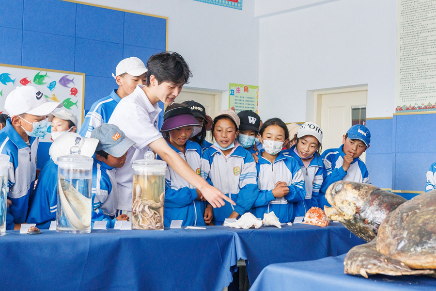 據(jù)介紹,支教隊(duì)在抵達(dá)囊謙第二完小后,充分發(fā)揮海洋特色,向孩子們分享了海洋生物博物館中的標(biāo)本制作方法,普及標(biāo)本的制作原理,并且從海洋的分布位置到海洋物種數(shù)量及分類,從體積最大的海洋生物藍(lán)鯨到游泳速度最快的劍魚(yú),以及海洋污染的危害等方面為孩子們普及海洋環(huán)境保護(hù)知識(shí)。