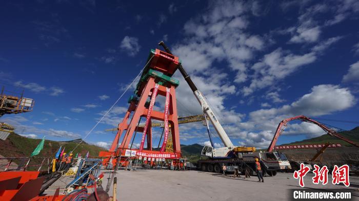 圖為瑪爾擋水電站首臺壩頂門機順利完成吊裝。趙成悅 攝