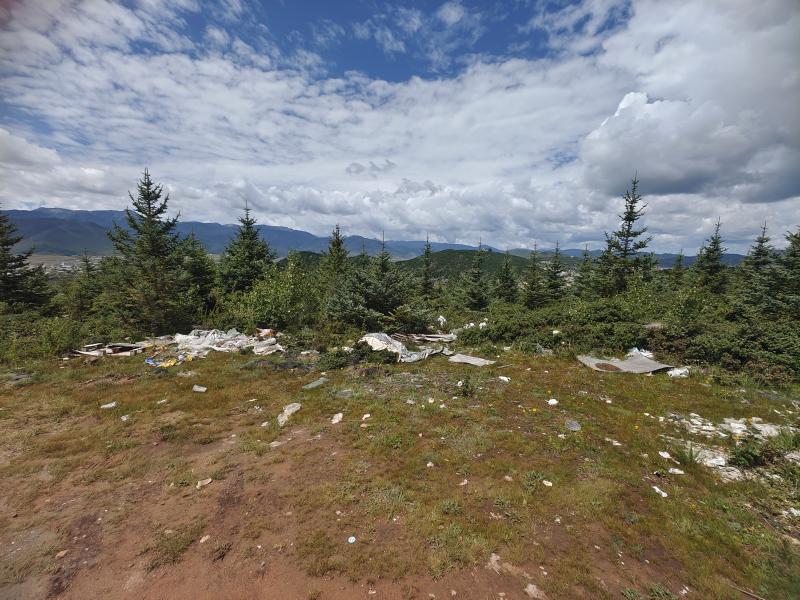 五鳳山登山健身步道全長約13公里,沿線森林茂密,溪水潺潺,景色優(yōu)美,登高而上可遠眺石卡雪山、香格里拉城區(qū)全景,穿越埡口、牧場,是市民健身休閑的好去處。尤其夏季以來,香格里拉氣候舒適,每到周末,不少人選擇走進山林露營小憩、采摘野生菌,感受大自然的樂趣,然而,同他們一同闖入林中的還有各種被丟棄的垃圾,這些不文明的現(xiàn)象也成為了美景中的“內(nèi)傷”。