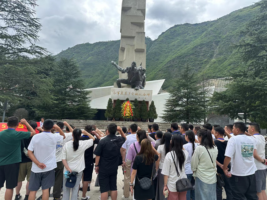 圖為學(xué)員們?cè)诩t軍飛奪瀘定橋紀(jì)念館接受現(xiàn)場(chǎng)教學(xué)。