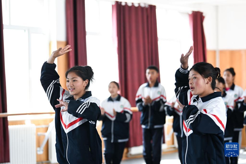 9月8日,在果洛藏族自治州職業(yè)技術學校,學前教育專業(yè)學生在上舞蹈課。新華社記者 張龍 攝