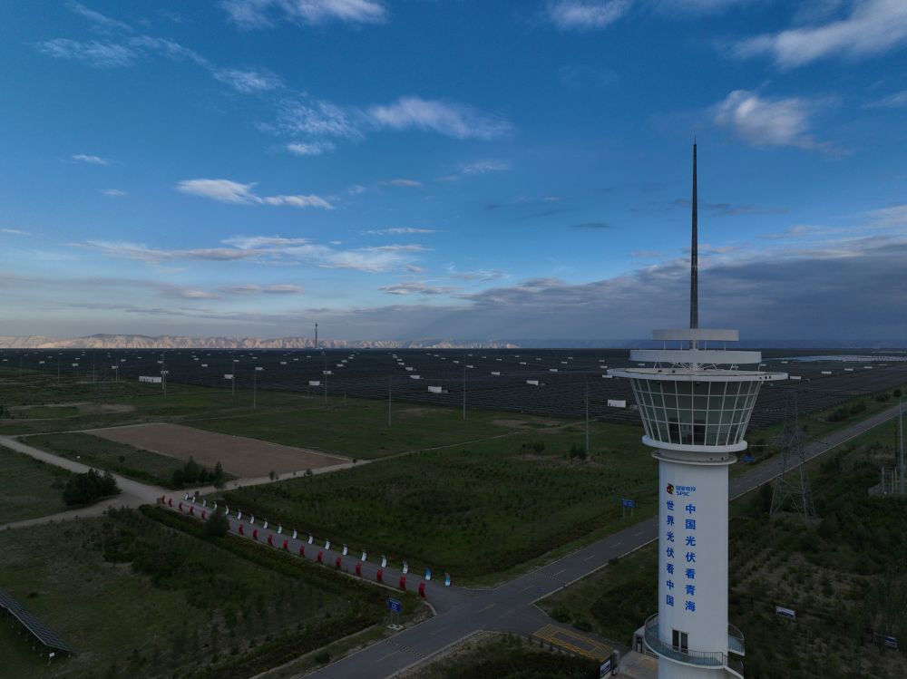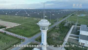 一條條高壓輸電線連接著塔拉灘的“光”與龍羊峽的“水”,實現(xiàn)塔拉灘上經濟效益和生態(tài)效益的共贏。