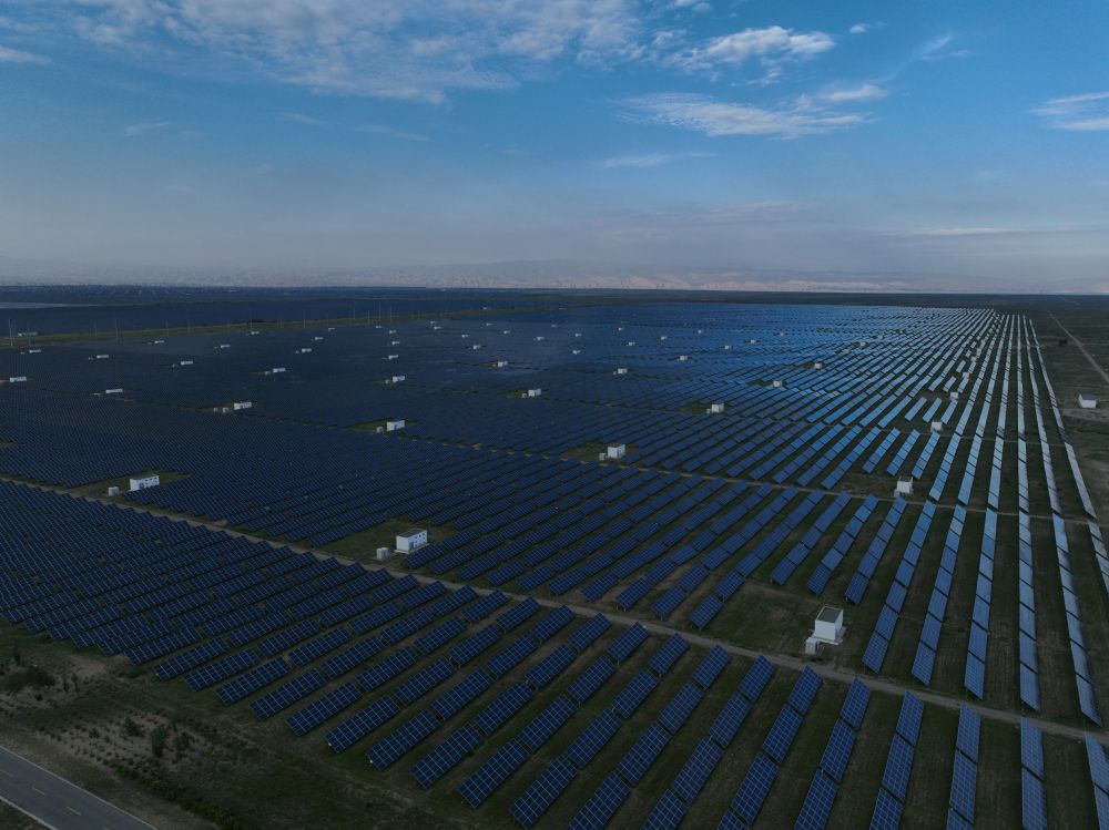 2023年8月15日在青海省海南藏族自治州共和縣拍攝的光伏電站。新華社記者 邢廣利 攝