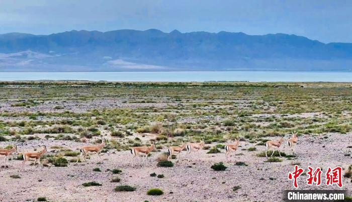 鵝喉羚尕海湖畔結(jié)伴覓食