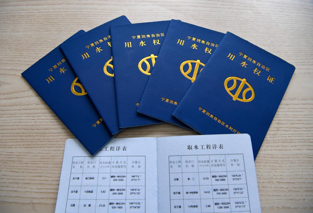 寧夏吳忠市利通區(qū)高閘鎮(zhèn)部分村莊的用水權證(5月24日攝)。新華社記者馮開華 攝
