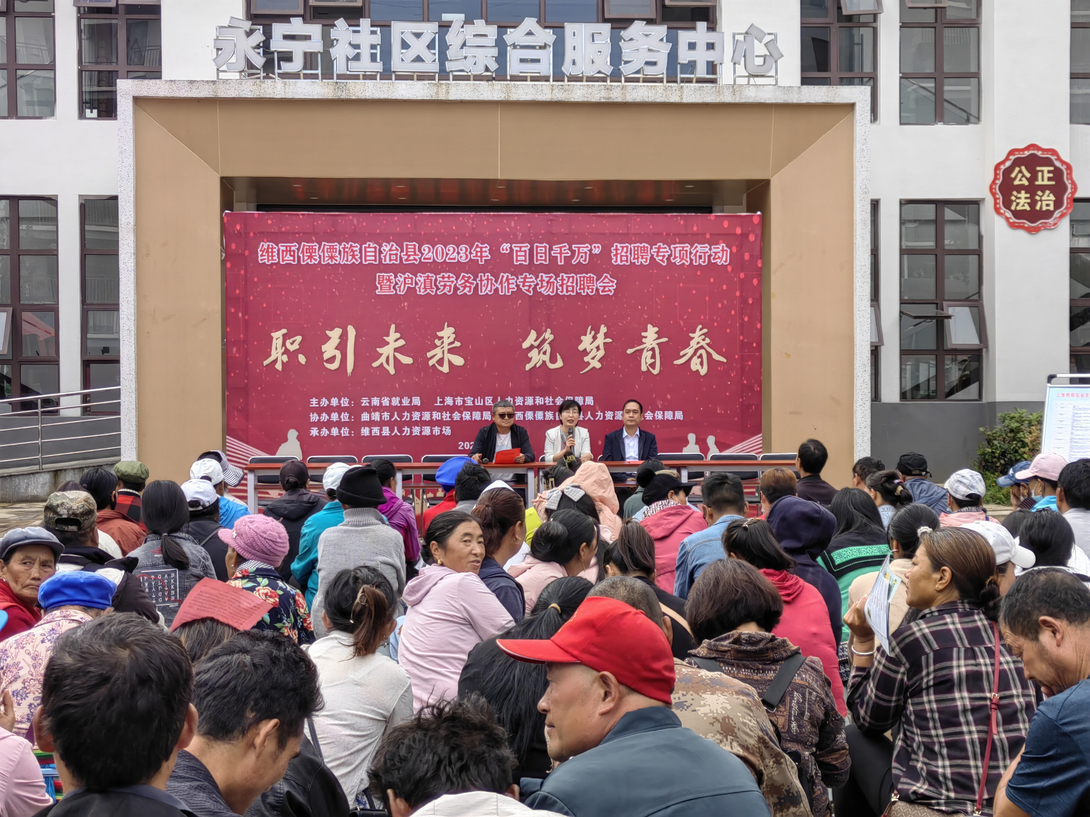 9月11日,由云南省就業(yè)局、上海市寶山區(qū)人社局、曲靖市人社局、維西縣人社局共同主辦的2023年“百日千萬”招聘專項(xiàng)行動暨滬滇勞務(wù)協(xié)作專場招聘會在維西縣保和鎮(zhèn)永寧社區(qū)舉辦。