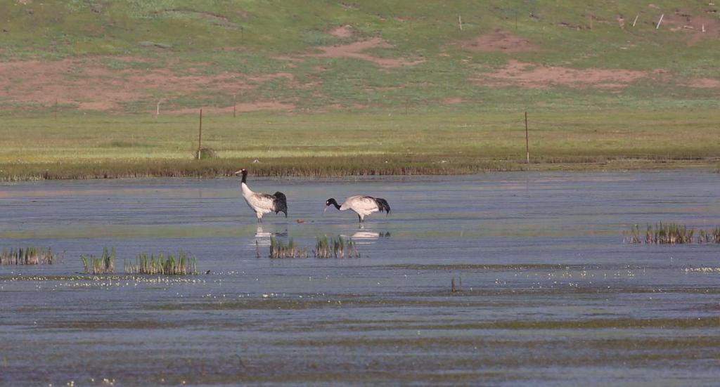 2022年7月1日,在河南縣境內(nèi)活動(dòng)的黑頸鶴。才項(xiàng)南加 攝