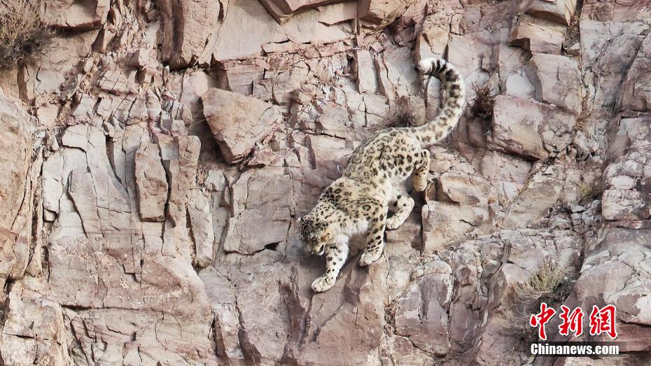 近日,攝影師在位于祁連山南麓的青海省海西蒙古族藏族自治州天峻縣蘇里鄉(xiāng)曲尕追村境內(nèi),拍攝到雪豹的高清畫(huà)面。畫(huà)面中,一只雪豹從懸崖峭壁之上踏石而下,步履矯健。雪豹是青藏高原旗艦物種,處于食物鏈頂端,國(guó)家一級(jí)保護(hù)野生動(dòng)物,被稱為“雪山之王”。據(jù)了解,雪豹喜好干燥涼爽、多裸巖的陡峭山區(qū),除了繁殖期一般都是單獨(dú)行動(dòng)。近年來(lái),祁連山自然生態(tài)系統(tǒng)穩(wěn)定性和循環(huán)能力全面提升,生物多樣性保護(hù)得到加強(qiáng)。當(dāng)?shù)匾讯啻闻臄z到雪豹活動(dòng)的場(chǎng)景。