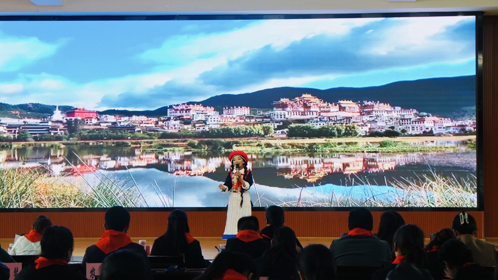 活動(dòng)共分為三項(xiàng),包括香格里拉市首屆格?;ㄐv團(tuán)紅領(lǐng)巾講解員風(fēng)采大賽、現(xiàn)場(chǎng)觀摩實(shí)驗(yàn)小學(xué)中隊(duì)輔導(dǎo)員風(fēng)采展示、現(xiàn)場(chǎng)觀摩獨(dú)克宗小學(xué)格桑花宣講團(tuán)風(fēng)采展示。