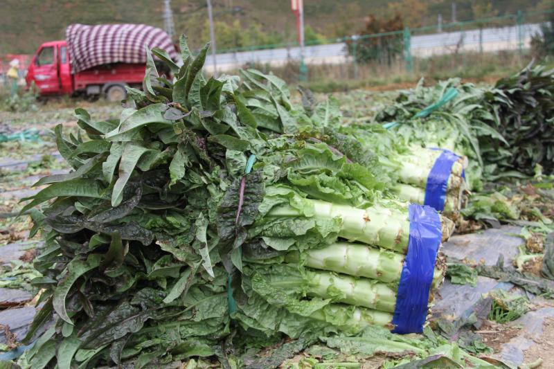 時下,正是萵筍成熟收獲的季節(jié)。在香格里拉市解放村乃日村民小組的萵筍地里,一棵棵青翠欲滴的萵筍把土地染得綠意濃濃,豐收的喜悅撲面而來。菜農正在采收萵筍,收割、擇摘、打捆、稱重、搬運、裝車,一套流程下來一氣呵成,現(xiàn)場呈現(xiàn)出一派繁忙熱鬧的景象。