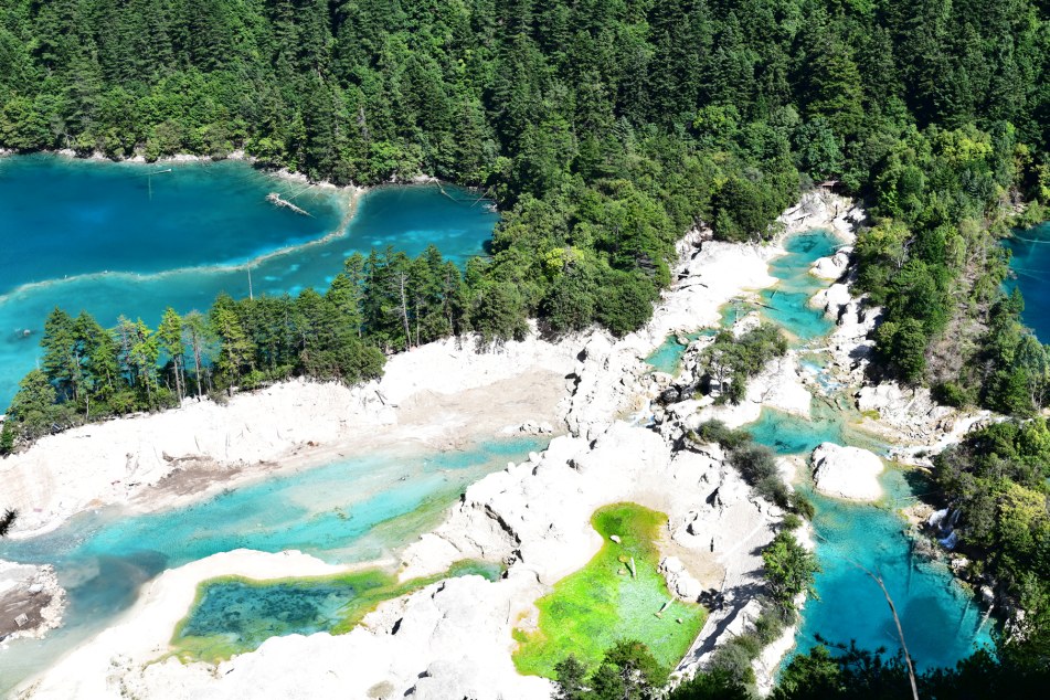 今的火花海,其修復(fù)方案得到聯(lián)合國(guó)教科文組織肯定支持,榮獲四川省“科技進(jìn)步一等獎(jiǎng)”。圖據(jù)九寨溝管理局