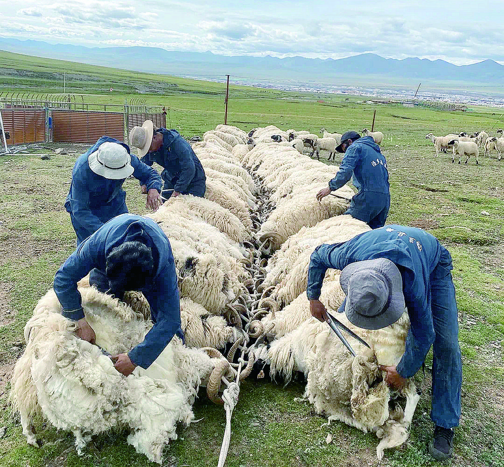 剪羊毛。治多縣國營牧場暨鹿場供圖