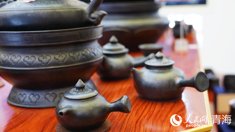班瑪縣電商中心展示的黑陶產(chǎn)品。人民網(wǎng)記者 楊啟紅攝