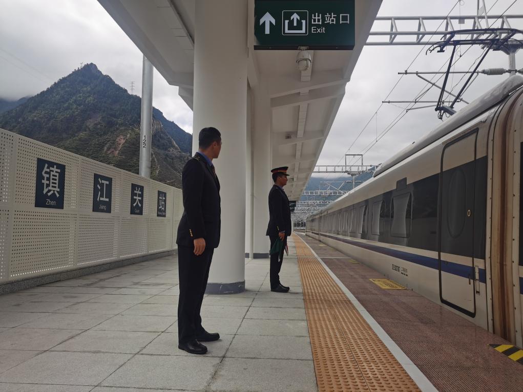 記者搭乘動(dòng)車前往川青鐵路青白江至鎮(zhèn)江關(guān)段實(shí)地探訪7座新車站。劉忠俊 攝