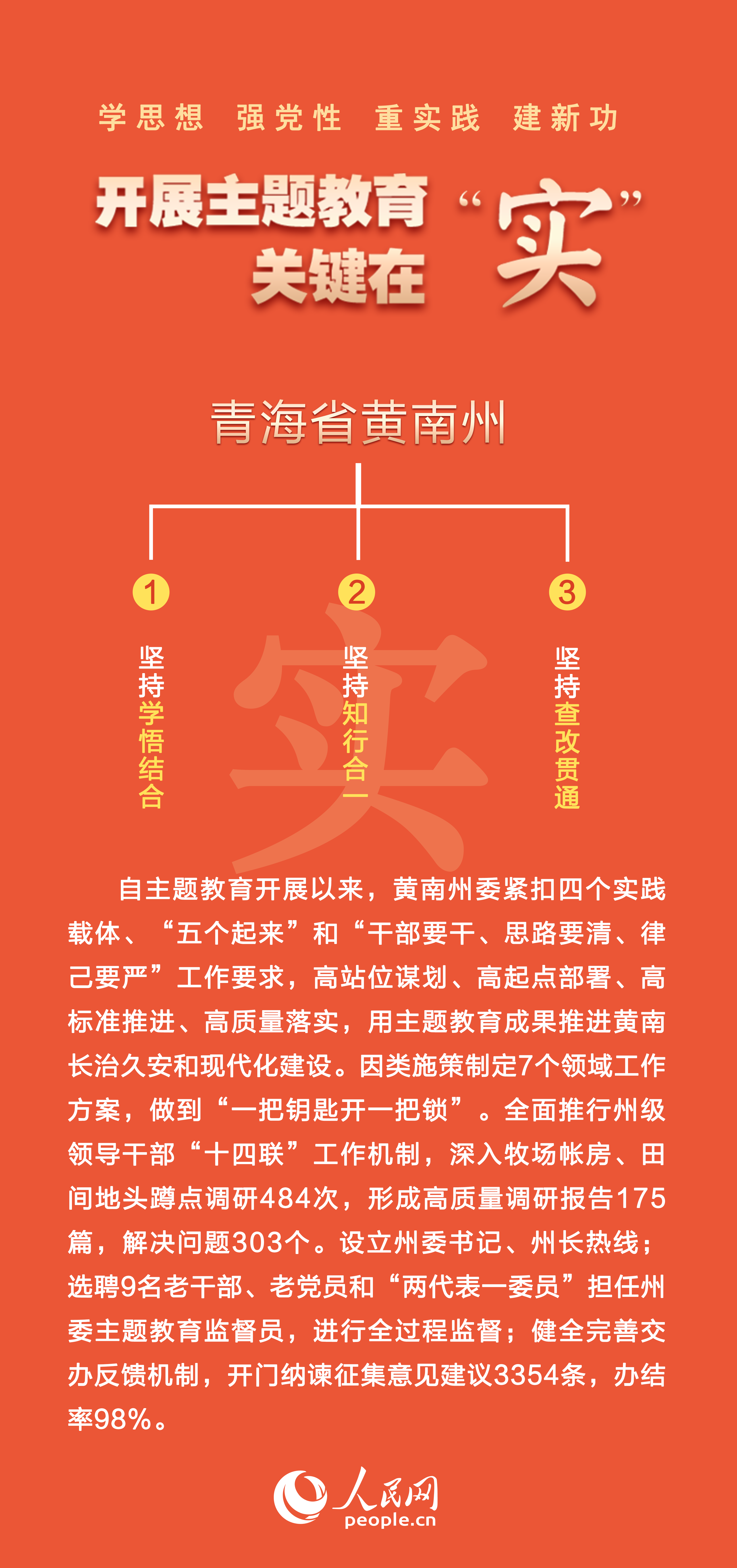 自主題教育開展以來,青海省黃南藏族自治州把實的要求貫穿主題教育全過程。各級黨組織立足工作實際,引導廣大黨員干部把工作崗位作為強化黨性歷練、密切聯(lián)系群眾的重要平臺,一件一件抓落實,一項一項見成效,真正讓群眾看到主題教育帶來的喜人變化。