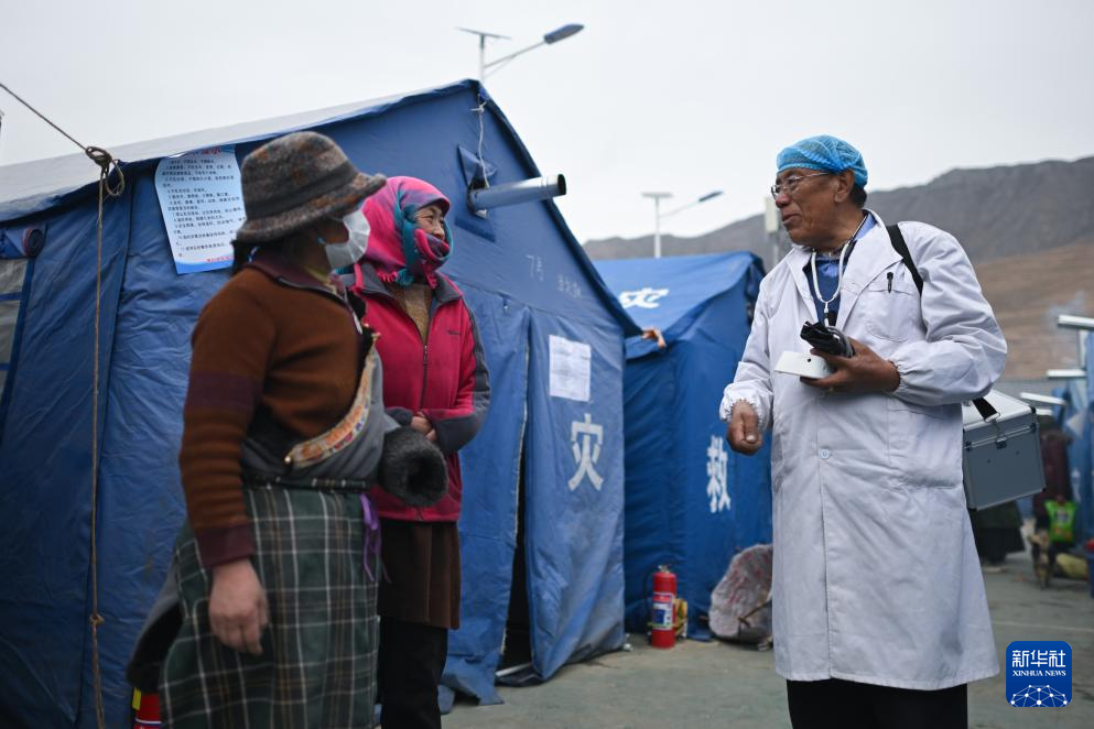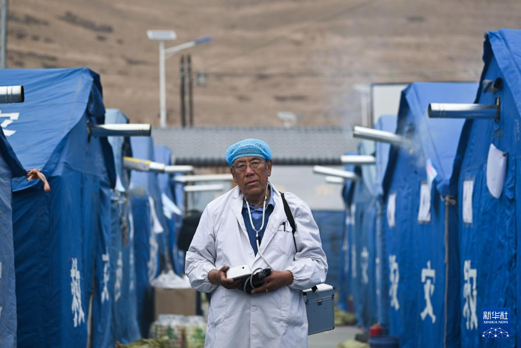 積石山6.2級(jí)地震發(fā)生后,青海省海東市循化撒拉族自治縣道幃藏族鄉(xiāng)牙木村部分房屋出現(xiàn)損毀,當(dāng)?shù)卣谝粫r(shí)間在牙木村建設(shè)安置點(diǎn)。因?yàn)槟贻p時(shí)就讀于衛(wèi)生學(xué)校、掌握基本的醫(yī)療技能,60歲的完么仁增成為安置點(diǎn)的義務(wù)衛(wèi)生員,為村民量血壓并普及健康知識(shí)。“我想做些力所能及的事幫助鄉(xiāng)親們?!蓖昝慈试稣f。