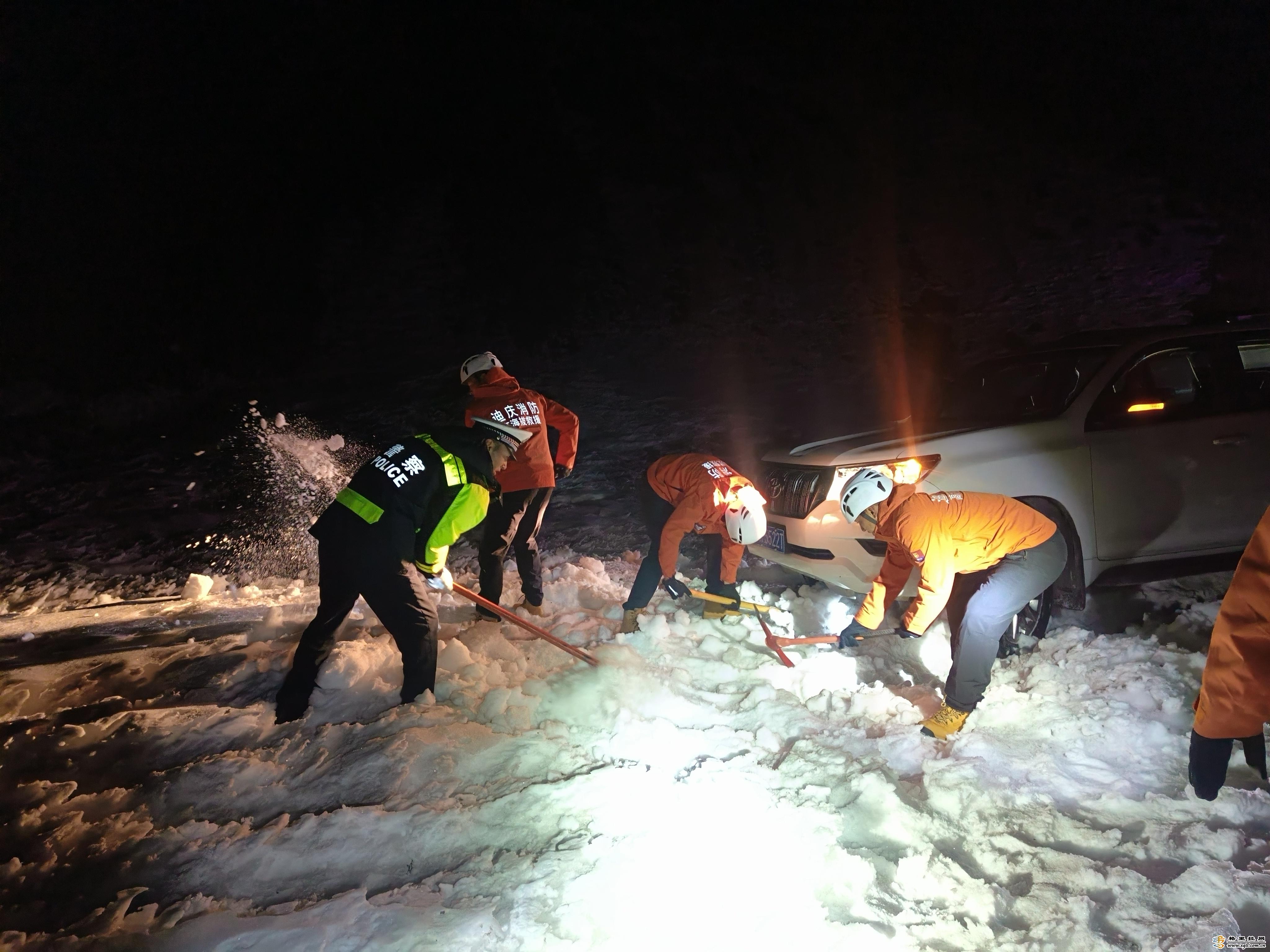 跨年夜兩車(chē)雪地受困 迪慶德欽消防緊急救援