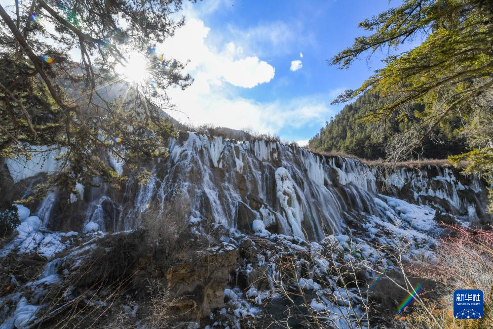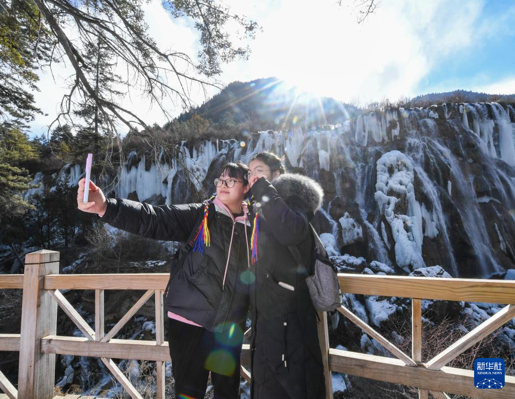 1月4日,中國九寨溝第十九屆國際冰瀑旅游節(jié)開幕式在四川九寨溝風景名勝區(qū)舉行。景區(qū)內(nèi)特有的藍色冰瀑,在冬日暖陽的照射下氤氳著水汽,讓游客沉浸于九寨溝的冬季魅力。