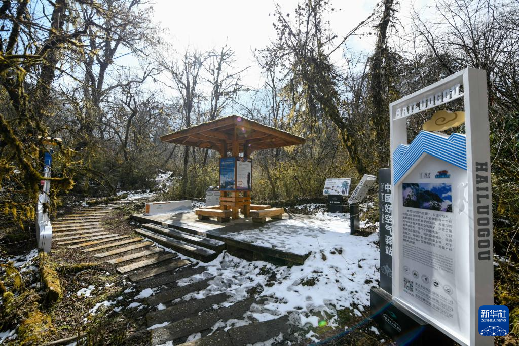 這是1月10日拍攝的海螺溝景區(qū)草海子步游道一角。景區(qū)重建時(shí)在步游道上新增了信息提示牌,供游客更好地認(rèn)識(shí)海螺溝。新華社記者 胥冰潔 攝