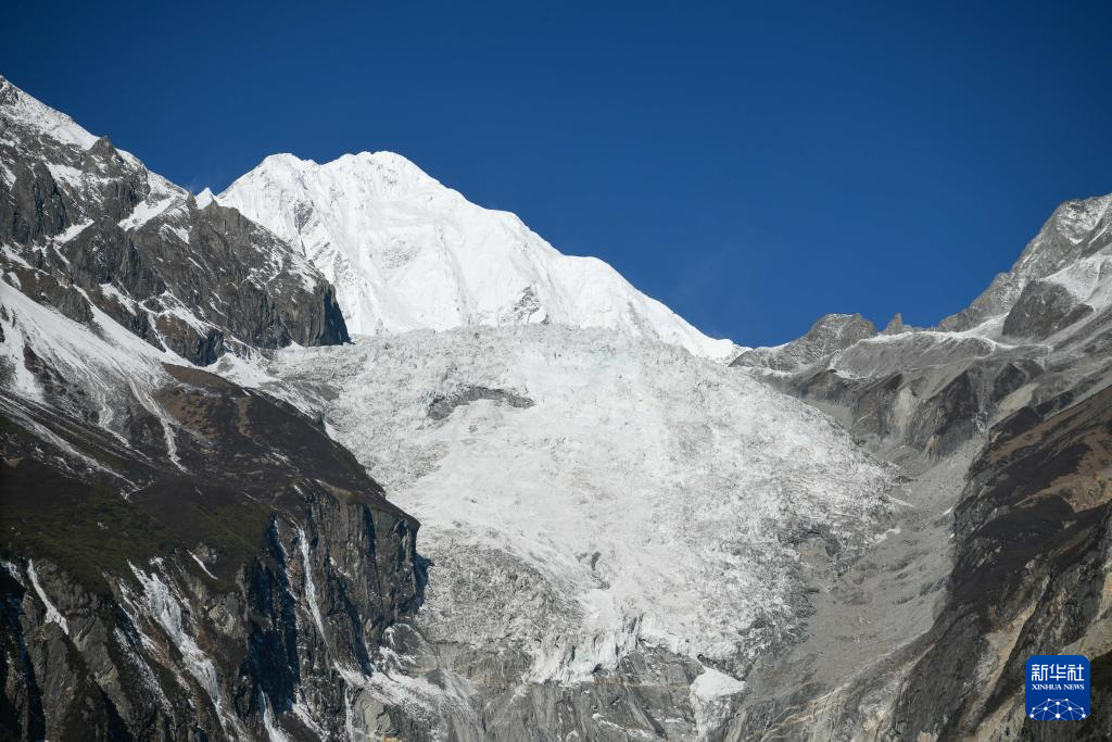 這是1月10日拍攝的從海螺溝景區(qū)遠(yuǎn)眺貢嘎冰川。新華社記者 胥冰潔 攝